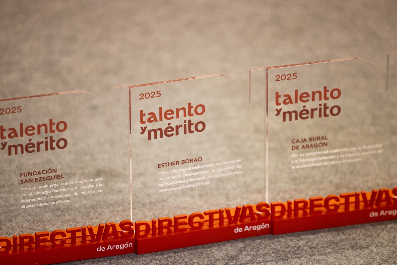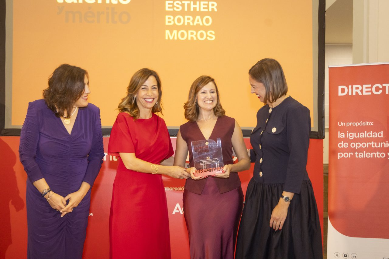 La alcaldesa de Zaragoza, Natalia Chueca, y la presidenta y vicepresidenta de Directivas de Aragón, María Sasot y Uxue Ardáiz respectivamente, han entregado el premio a Esther Borao, que ha declarado que, “cuando somos capaces de integrar diversidad y cultura, el impacto se multiplica y todo lo bueno empieza a suceder”.